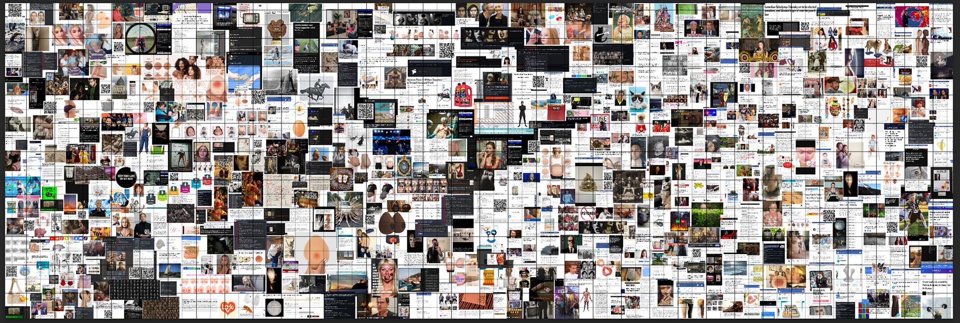 This exhibition, “Looks Maxxing”, by Micol Hebron consists of three large wall pieces– each one comprised of hundreds of digital images. The individual works, titled 'Screen/shot', 'Curriculum', and 'Whose body, whose choice?' offer a partial self portrait of an artist living in the digital Anthropocene. A central theme that recurs in