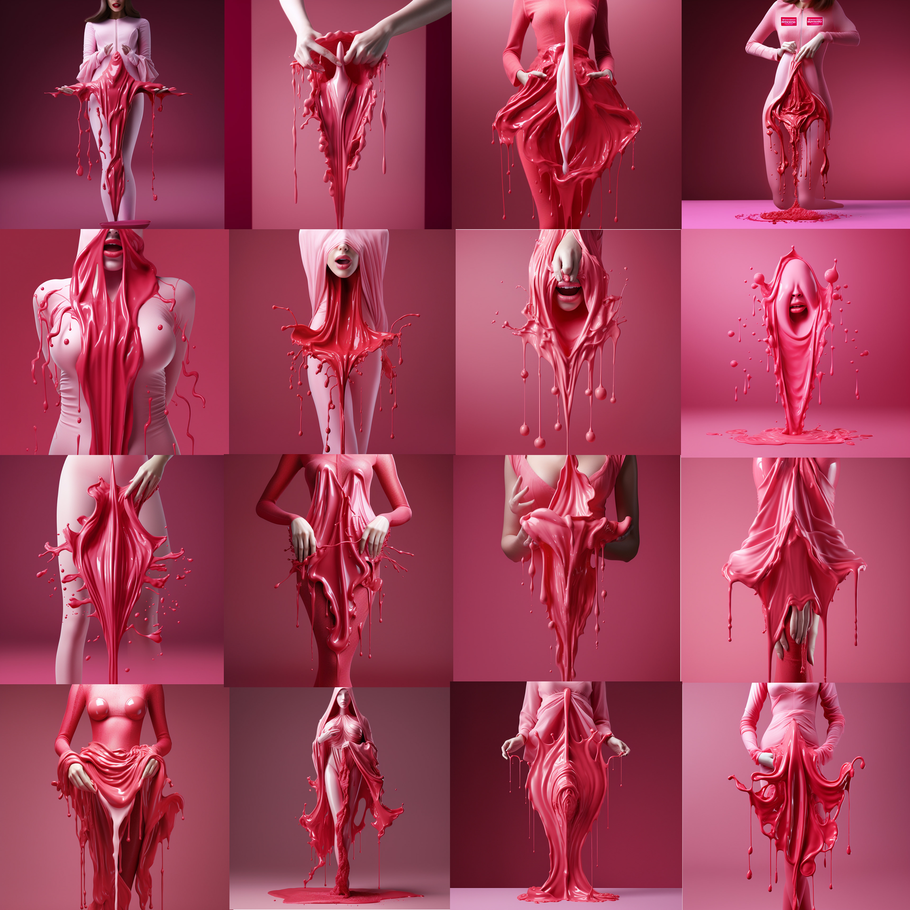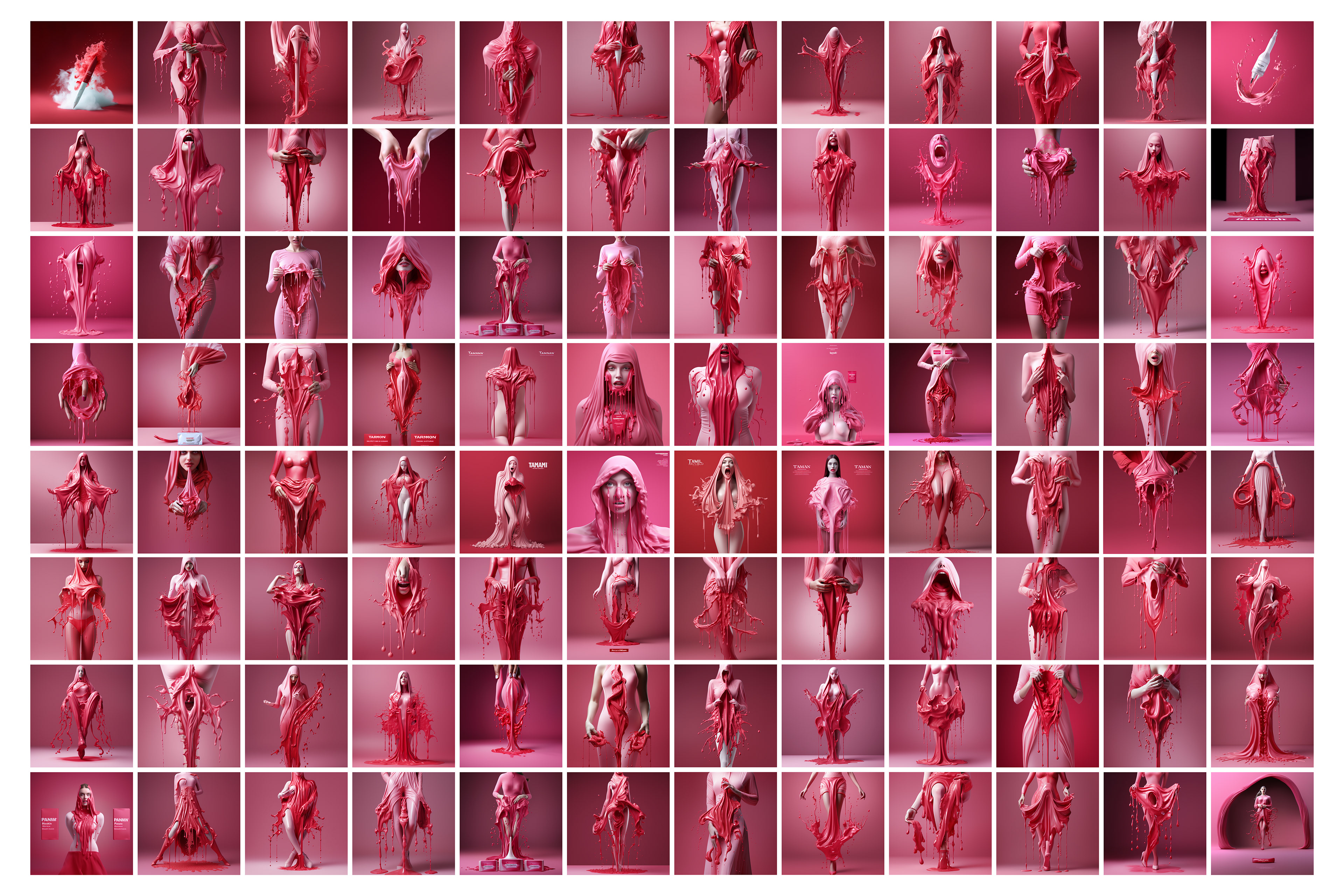 The last piece, Whose body, whose choice, is a selection of images created using generative artificial intelligence, and very simple prompts. The images are not intended to as substitutes for photography, painting, or graphic design. Rather they are an exploration of the very medium of generative AI – how language and concepts are processed and interpreted by the AI algorithms. The resulting images reveal deficits and bias in the AI programming as they explore and expose what information is missing or skewed from the datasets that are used to create the images. The prompts are inspired by various things – news headlines, memes, stereotypes, advertising, gender expression, and various other socio-cultural tropes.
